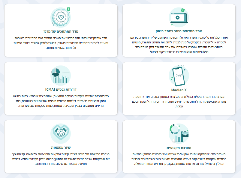 באתר מדלן מפורסמים עשרות אלפי נכסים למגורים וגם לשוק הנדל"ן המסחרי, לקניה ולהשכרה.