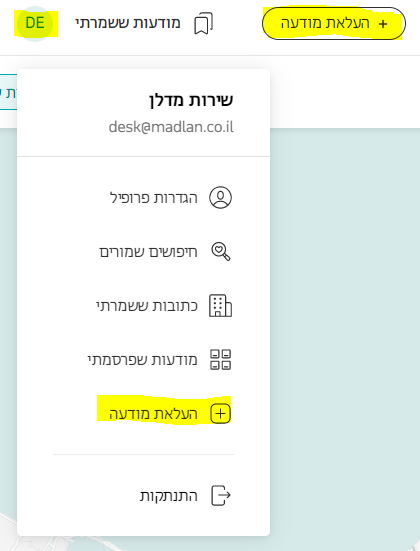 2.1 לאחר ההתחברות, ליד ראשי התיבות של הפרופיל שלכם, או בלחיצה עליהם- תפתח רשימה,
