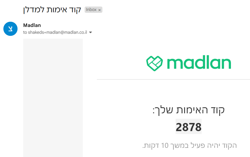 פתחו את המייל ממדלן, אפשר לבצע העתק הדבק לקוד האימות.