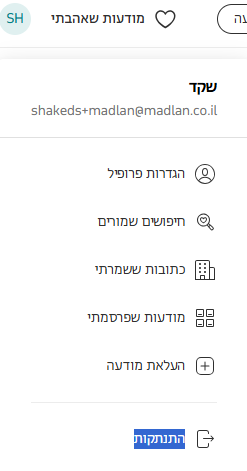 לאחר שנרשמתם, המערכת תחבר אתכם אוטומטית ובצד שמאל למעלה תראו 2 אותיות באנגלית עם תפריט ניהול(אזור אישי). להתחברות מחדש, אפשר להעזר במדריך הזה: איך מתחברים לאתר?