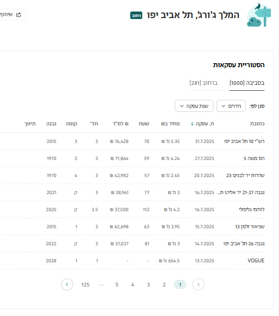 בלשונית הזו תוכלו למצוא גם את דיווחי העסקאות(דירות שנמכרו) באזור שחיפשתם