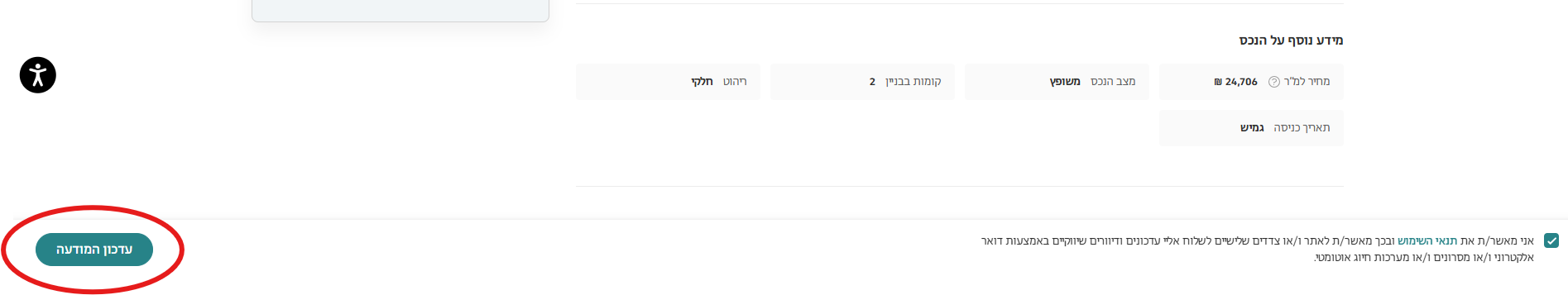 בסיום, לחצו על הכפתור "עדכון מודעה" בצד שמאל – ורק כך השינויים יישמרו.