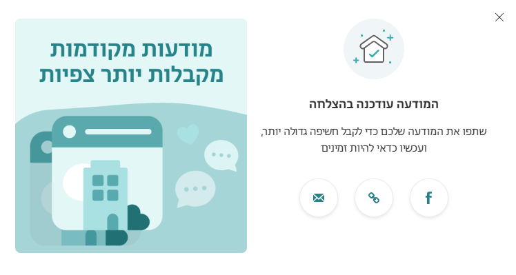 לאחר לחיצה על כפתור "עדכון מודעה",