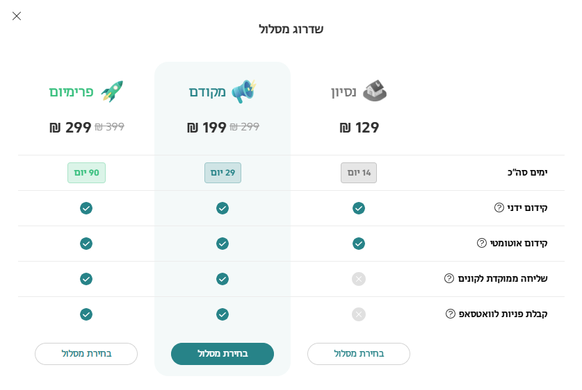 2. לקדם בתשלום את המודעה באחד ממסלולי הקידום.