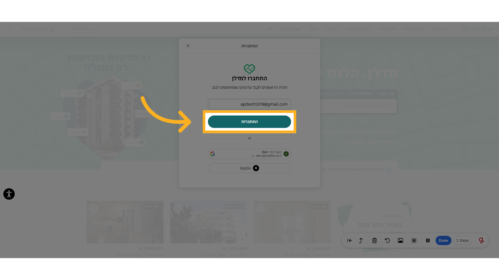 יש לכתוב את כתובת המייל איתה נרשמת לאתר מדלן- ואז נלחץ על התחברות