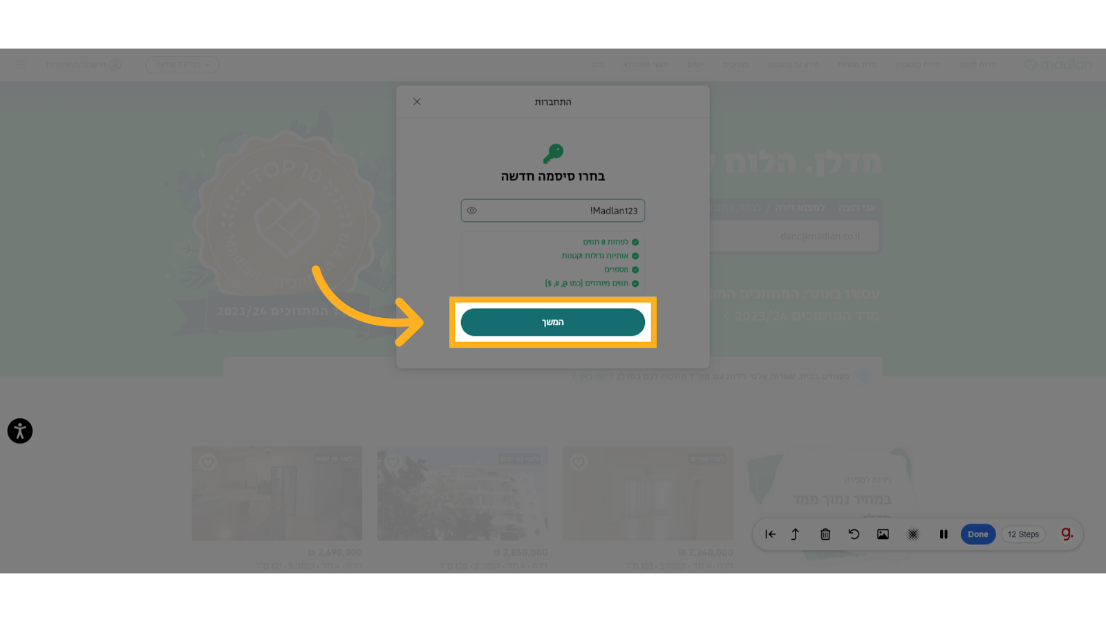 על מנת לאפס את הסיסמה לאתר מדלן, עלינו להיכנס לאתר מדלן- www.madlan.co.il