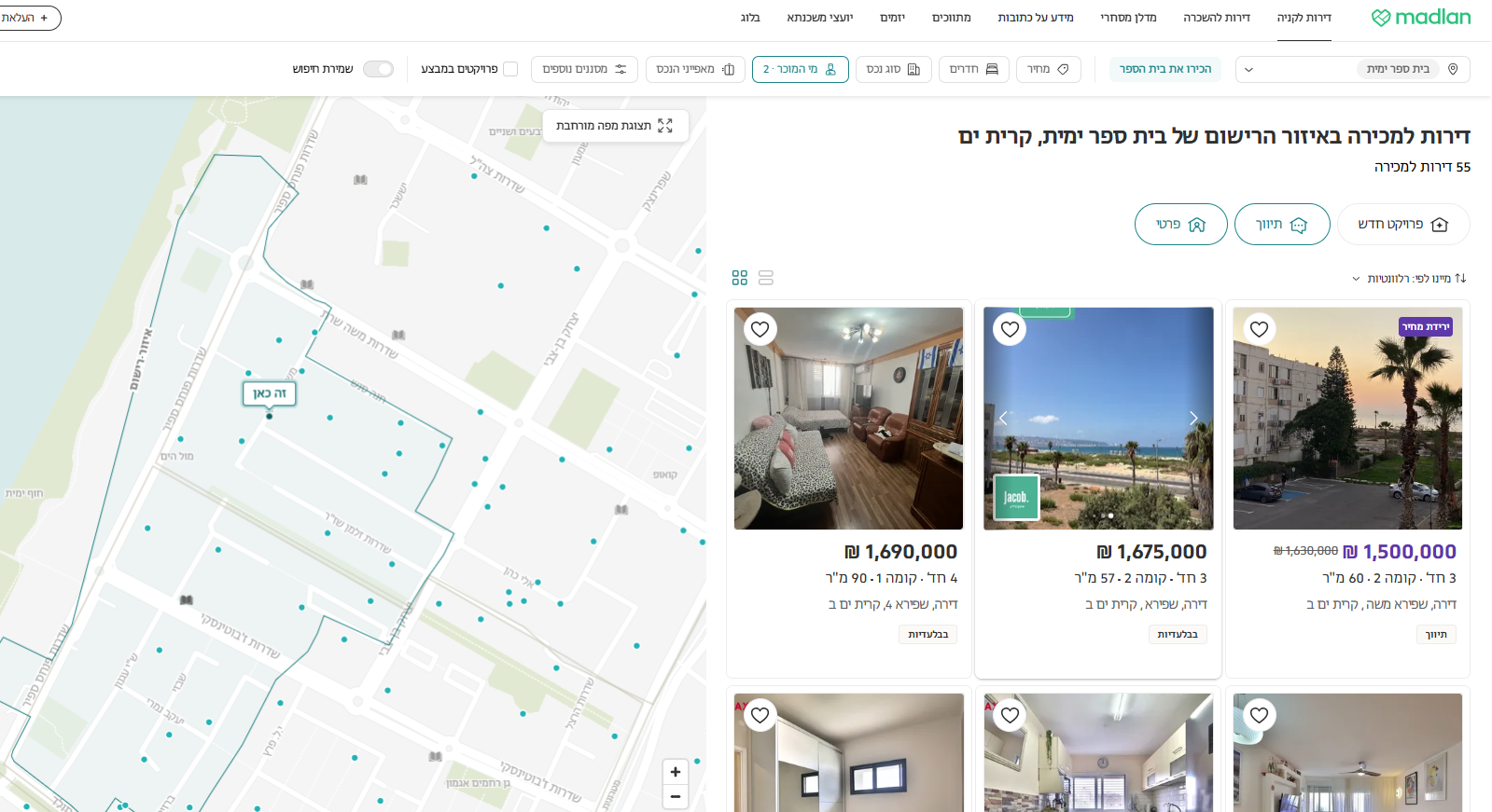 אפשר אפילו לחפש דירות לקניה/השכרה באזור הרישום של בית ספר מסוים לבחירתכם